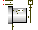 A : triangle sur contour ou prolongement B : triangle en face d'une ligne de cote